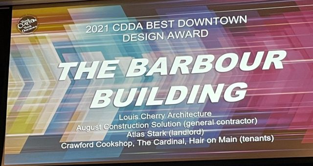The Barbour Building, home of Crawford Cookshop, was honored at The Clayton Chamber of Commerce 2021 Annual Meeting and Community Awards Ceremony.