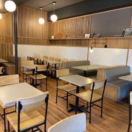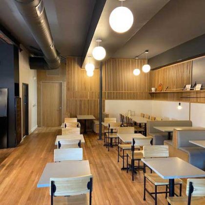 ACS worked closely with Atlas Stark, to make modifications throughout the entire building to prepare it for this next iteration. We repaired façade brickwork and painted the entire building, installed new duct work and acoustic ceilings, and rehabilitated existing hardwood flooring throughout. We completed work to the roof and installed a steel screen to hide the rooftop unit (RTU) to meet town code. Additionally, we built two generous patios with awnings-one for Crawford Cookshop, the other for a neighboring tenant. The patio extends the dining room and transforms the exterior space to visually connect it to the inside experience.