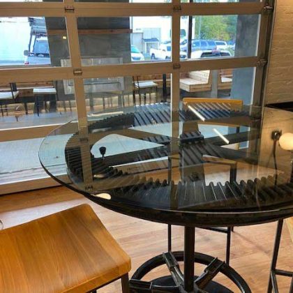 As is often the case with older structures, there was a welcomed surprise during the interior demolition phase. While removing walls to open the floorplan, the ACS team discovered an original elevator that had been covered up with drywall. We carefully deconstructed the historic piece to retain the parts. Elements of it were then adapted to create a one-of-a-kind table as well as incorporated as part of the exterior fireplace mantle.
