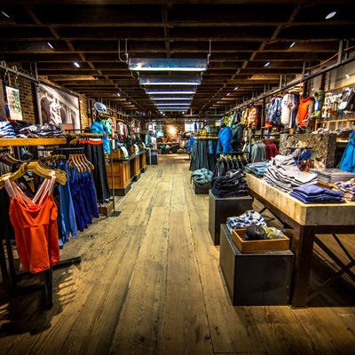 Nestled in the storied commercial area of Manhattan’s Meatpacking neighborhood, Patagonia’s challenge was to reimagine and renovate their plain, “white box” interior space to better reflect the history and architecture of this venerable neighborhood. A 2009 renovation left this a bland footprint, void of character. Using the space as a blank canvas, we were able to use reclaimed timber and bricks, custom wielded steel, as well as a fully functioning meat rail system to connect the interior experience with the beauty and timelessness of the building’s untouched exterior façade. The result was a seamless customer experience that maintained the integrity of the building’s era and style, while merchandising Patagonia’s products in an interesting and engaging manner.