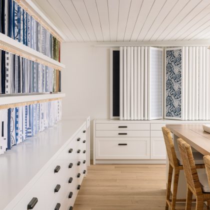 The total project, at just over 3,700 square feet, includes both interior and exterior transformations. ACS led the entire process, including the upfit of the interior space resulting in a light and airy sales floor, organized and functional design center, as well as practical back rooms. A skylight allows streams of sunlight to highlight the merchandise and carefully installed displays throughout to showcase Serena & Lily’s many textile samples.