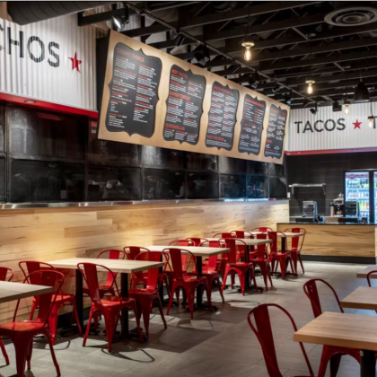 As with each Taco Bamba locale, the goal was to incorporate local details into the design of the restaurant, while maintaining the signature black and red artwork.